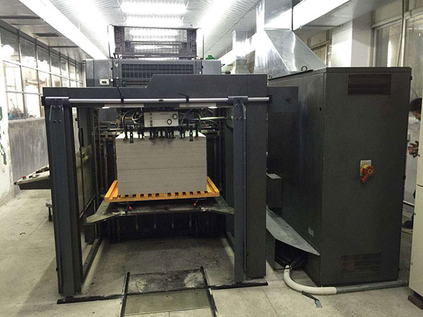 本公司開發生產了一種印刷機預裝紙裝置,適用于國內外各品牌印刷機,用于印刷機進紙的可垂直升降的進紙托盤,其特征在于: 在印刷機進紙托盤上安裝導軌,進紙托盤上導軌與地面安裝的導軌對接,所述導軌和所述進紙托盤之間還設置一個垂直于所述進紙托盤的縱長的定位尺。新型的印刷機預裝紙裝置通過導軌可以精確定位小平板車,再通過定位尺對其上的紙張進行定位,從而快速準確地對小平板車上的紙張進行定位作業。本實用新型的印刷機預裝紙置具有結構簡單,高效,定位準確等優點。